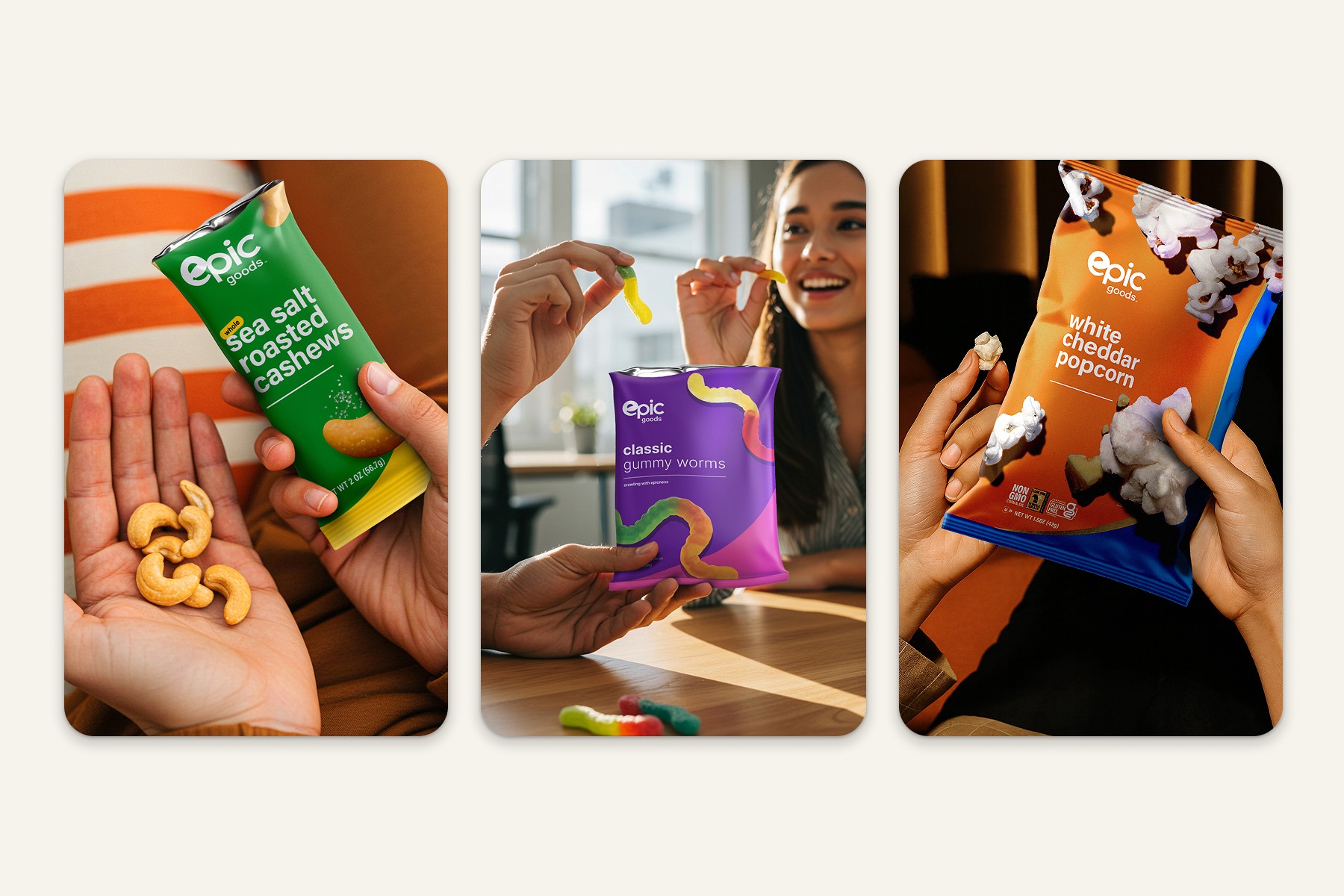 Epic Snacks is your go-to for flavor-packed finds and craveable convenience. Livalto partnered with the brand to craft a punchy identity that jumps off the shelf—confident, colorful, and undeniably fun.